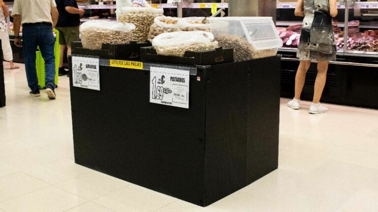 El trabajo realizado por GRUPO GP ® en este proyecto ha consistido en la creación de la cartelería de techo, paneles de secciones y señalizadores de precios como son los perfiles de las baldas. Este Hiperber de Aspe cuenta también con algunos elementos exclusivos como son las mesas expositoras de nuestra marca CUBEplex ®.